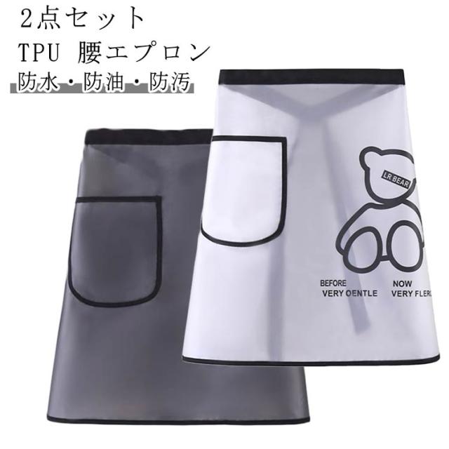 腰エプロン 透明 防油 TPUエプロン ショートエプロン メンズ 撥水 防水エプロン サロンエプロン 防水 2点セット 料理 割烹着 前掛け 半身タイプエプロン ワークエプロン カフェエプロン 2点セット ポケット付 男女兼用 水仕事 ガーデニング 業務用 美容室 カフェ用