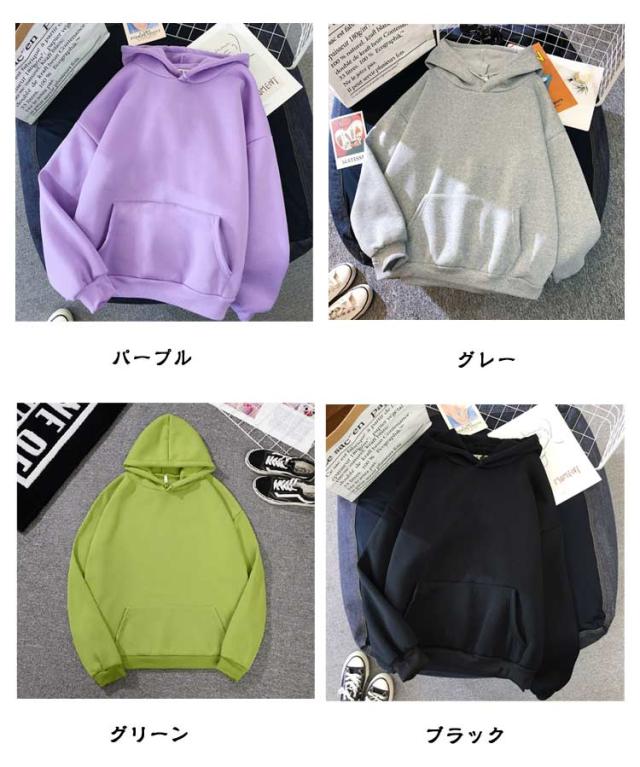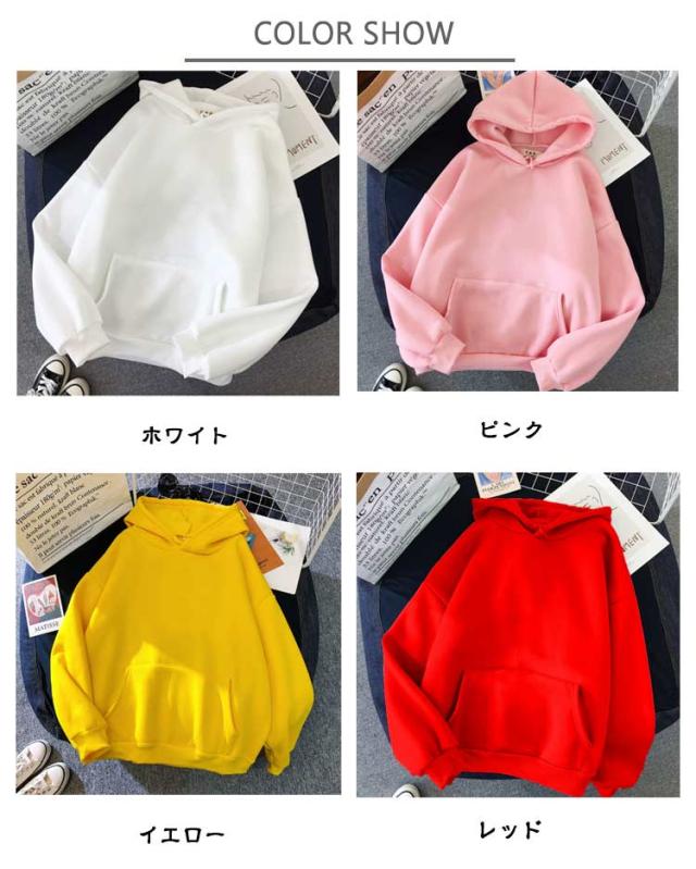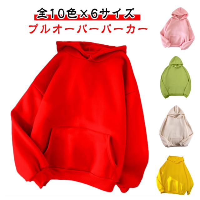 プルオーバーパーカー レディース 全10色×6サイズ 黄 フード付き シンプル 無地 ビッグシルエット ゆったり スウェット 長袖 大きいサイズ トップス スポーツ カジュアル ダンス 全10色×6サイズ 白 黒 灰 紫 ユニセックス 緑 ピンク レッド ブルー