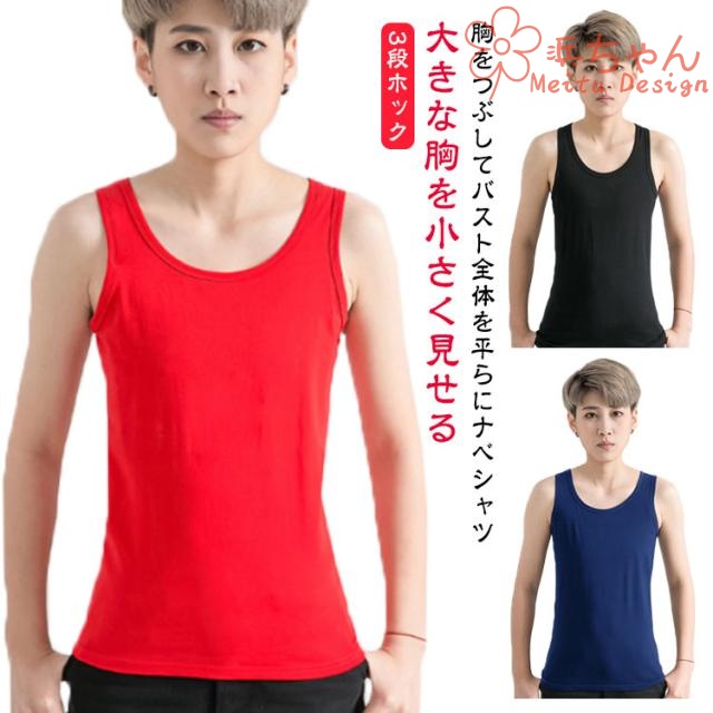 タンクトップ ナベシャツ 綿 つぶし 和装ブラ 3段ホック 下着 両脇ゴム コスプレ 胸揺れ 防止 胸 スポーツブラ 男装 ナベシャツ 胸潰し 大きな胸を小さく見せる インナー コットン レディース ブラジャー 大きい