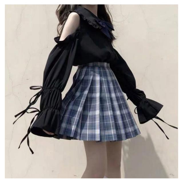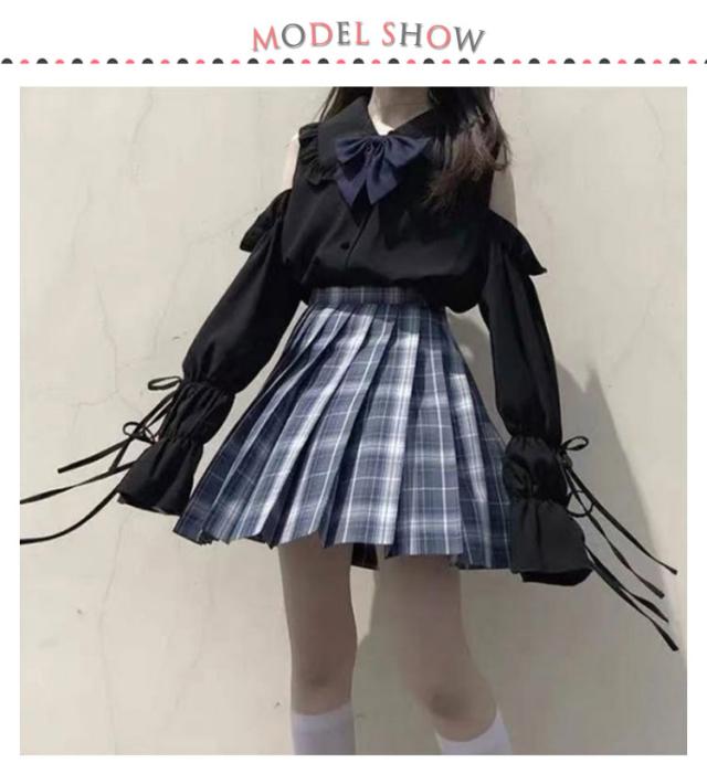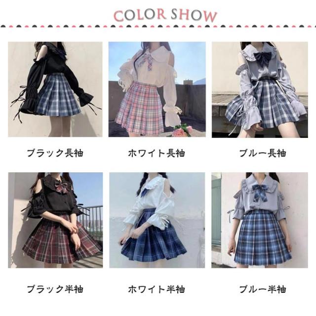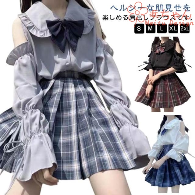 レディース 肩出し 長袖 フリル衿 肩出し ブラウス シャツブラウス シャツ 学生服 ロリータ 制服 リボン付き かわいい 女子高校生 コスプレ 可愛い 春夏秋 無地 トップス 量産型 服 スクールシャツ ゴスロリ カジュアル 肩あき