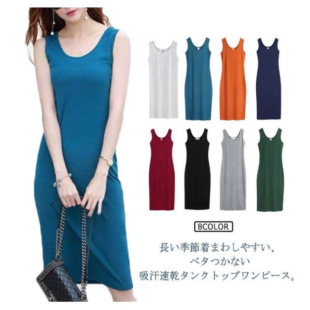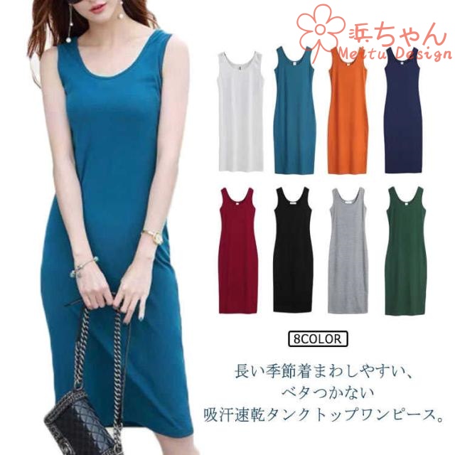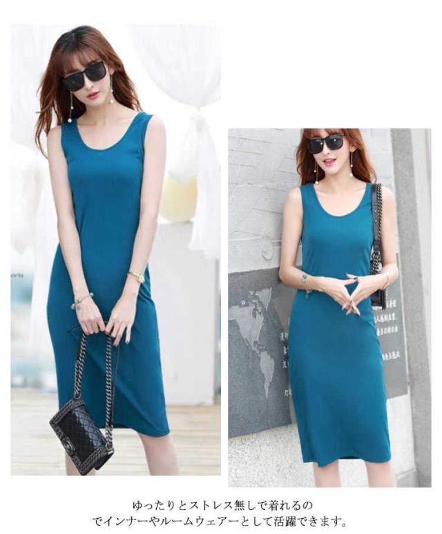 Uネック ルームウェ タンクトップ ワンピース キャミワンピ 無地 レディース ワンピース スリム ミモレ丈 タイトスカート ペチコート インナー 春夏 ノースリーブ 部屋着 下着 汗取り ビジネス カジュアル シンプル