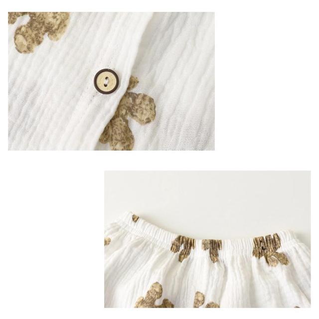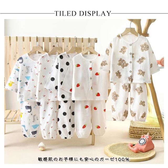 | 肌にやさしいガーゼ素材のパジャマ 敏感肌のお子様にも安心のガーゼ100% お子さまの寝汗もしっかり吸収 涼しく可愛いデザインでお部屋着におすすめです | |