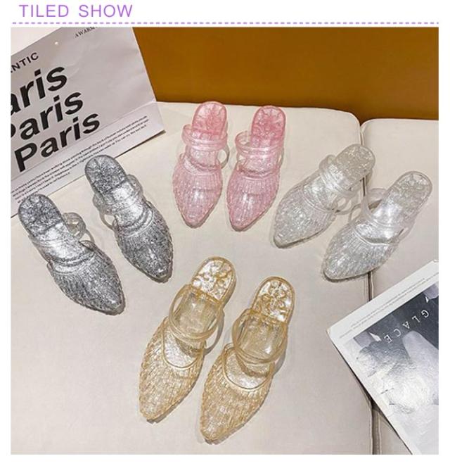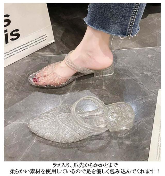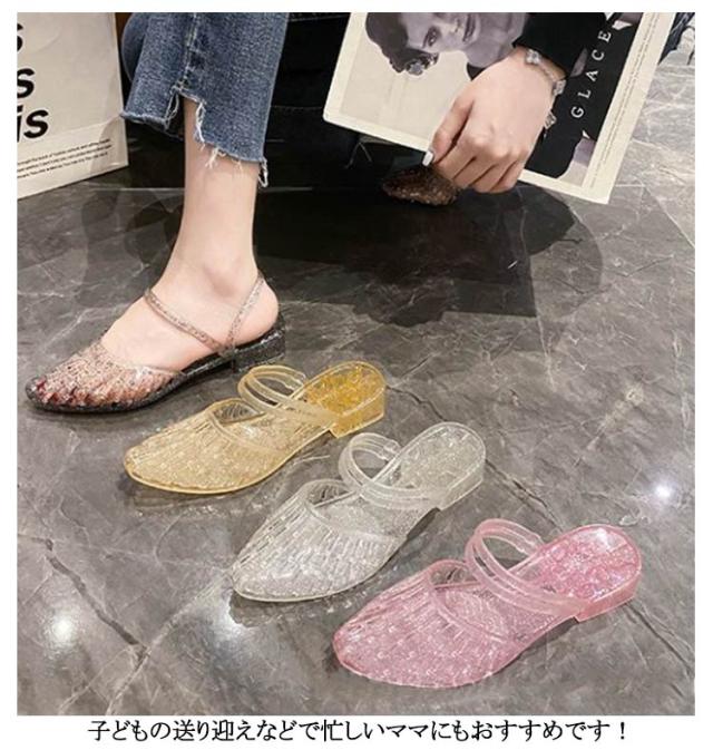レディース ラバーサンダル ラバーシューズ メッシュ ラバーパンプス PVC レインシューズ サンダル ローヒール ラバーサンダル キラキラ ビニールサンダル 雨靴 パンプス 女性 防水 防滑 おしゃれ かわいい 美脚 婦人靴 夏 梅雨 雨対策