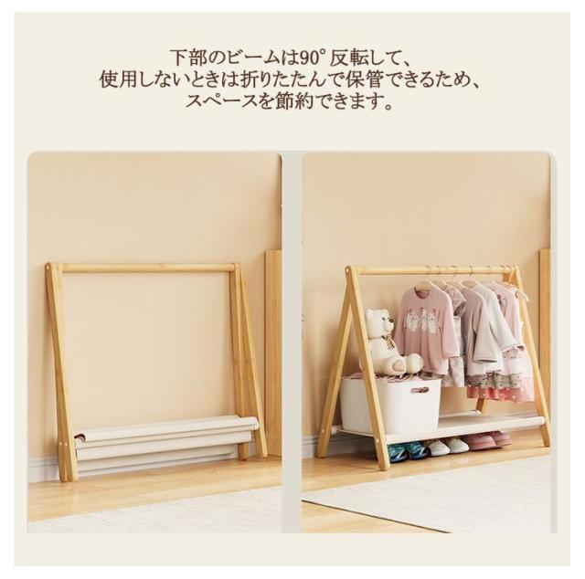 キッズ コートハンガー 木製 折りたたみ 子供服 子供 ラック 洋服掛け ハンガー 折りたたみ キッズハンガーラック ハンガーラック ハンガーポール ポールハンガー 衣類収納 頑丈 コンパクト 省スペース 収納 子供部屋 リビング 原色 茶色