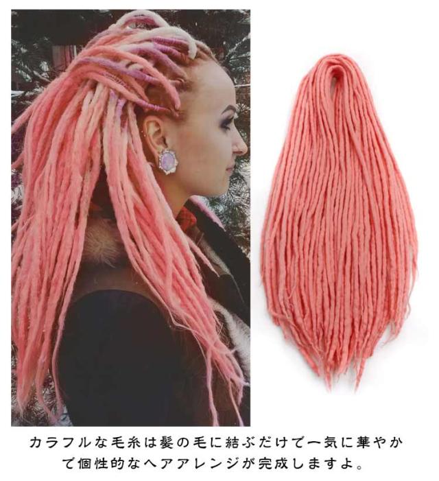 | ボリュームアップ&盛れるフェルトエクステ。 カラフルな毛糸は髪の毛に結ぶだけで一気に華やかで個性的なヘアアレンジが完成しますよ。 帽子やターバンと組み合わせや2個、3個と重ね付けアレンジもおすすめです。 エスニックなお洋服に合うヘアアレンジを手軽に、本格的に仕上げたい方におすすめ。 | |