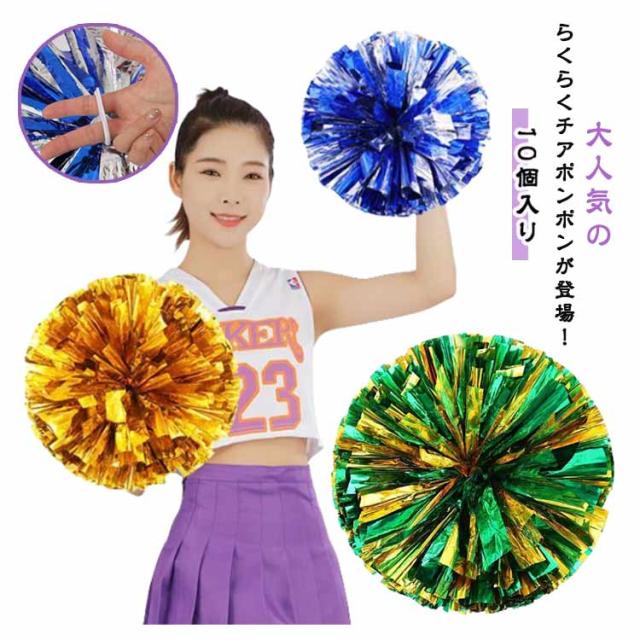 ポンポン 10個入り チアポンポン コスプレ ポンポン メッキテープ 応援グッズ ポンポン 35cm チア チアガール 30cm 衣装 5人分 ハロウィン 体育祭 運動会 応援団 チーム 団体 お遊戯会 ダンスアクセサリー 小道具