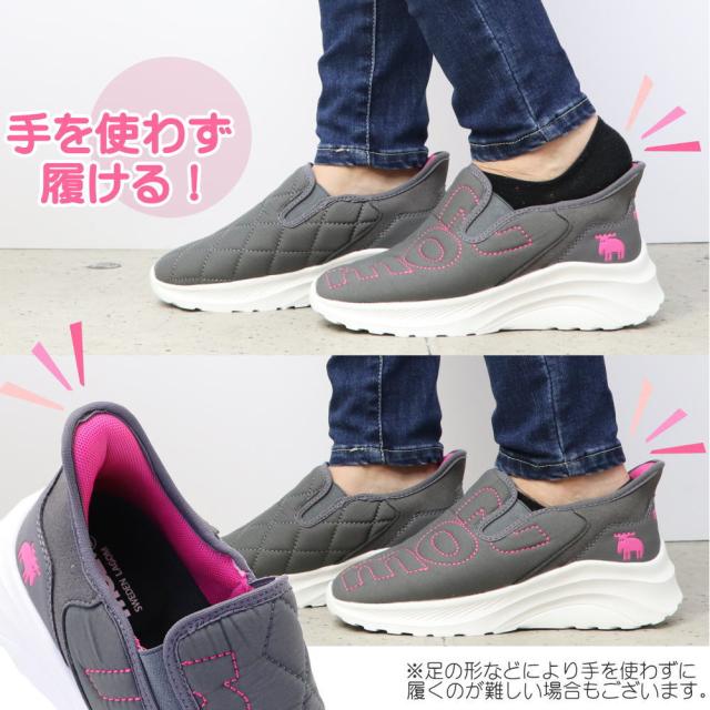 即納 手を使わず履ける MOZ モズ レディース スリッポン 撥水 厚底 キルティング イージーステップ ハンズフリー カジュアルシューズ No.408
