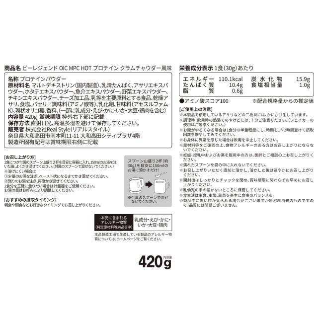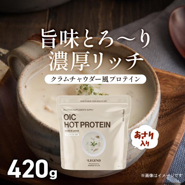 数量限定 ビーレジェンド OIC MPC HOT プロテイン クラムチャウダー風味 420g ダイエット 減量 たんぱく質 朝食