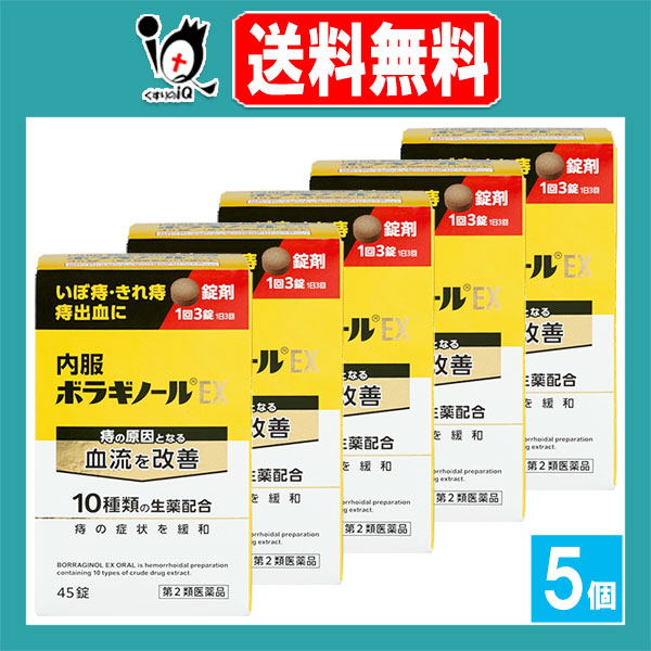 【第2類医薬品】内服ボラギノールEX 45錠×5個セット【天藤製薬】痔の原因となる血流を改善 10種類の生薬配合 痔の薬 痔 肛門 いぼ痔 イボ痔 きれ痔 切れ痔 痛み 痔出血