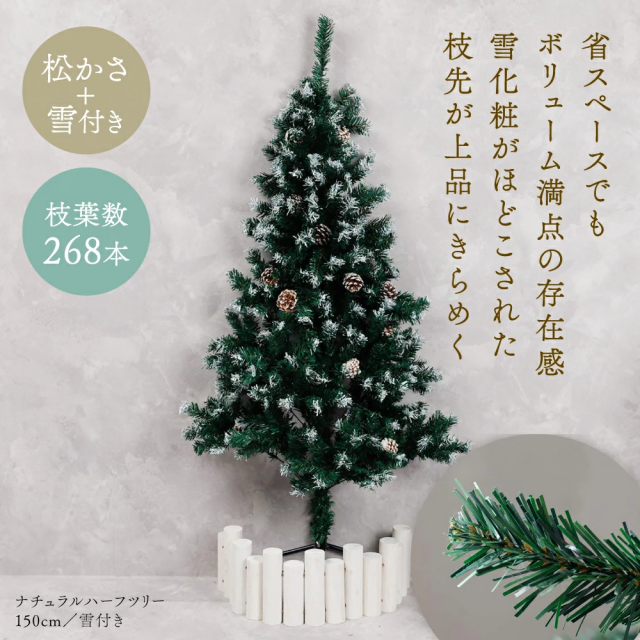 【自社倉庫出荷】ハーフツリー クリスマスツリー 120cm 150cm 『まるで本物の北欧ツリー』 北欧 ツリー おしゃれ 木 クリスマス ナチュラル 雪 雪付き 送料無料 レビュー 高評価