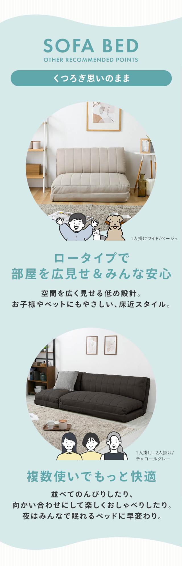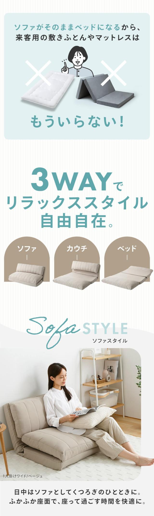 ★レビュー投稿でポイント還元★ ソファベッド 幅90cm ソファ ソファー 1人掛けワイド ソファベッド 幅90cm 3WAY リクライニングソファ ローソファ 座椅子 1人用 送料無料