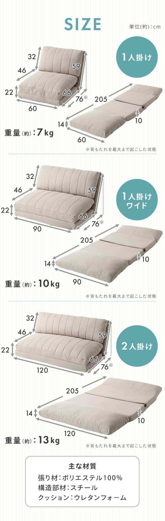 【3WAY仕様】多機能フロアソファ/リクライニング14段階・ワイド設計