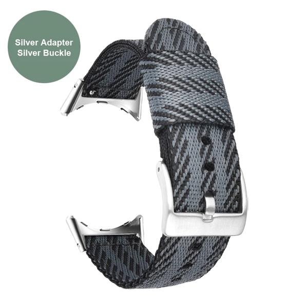 Google Pixel 2用の交換可能な時計バンド,新しいナイロンストラップと交換可能なバンド,黒と銀のバックル付き