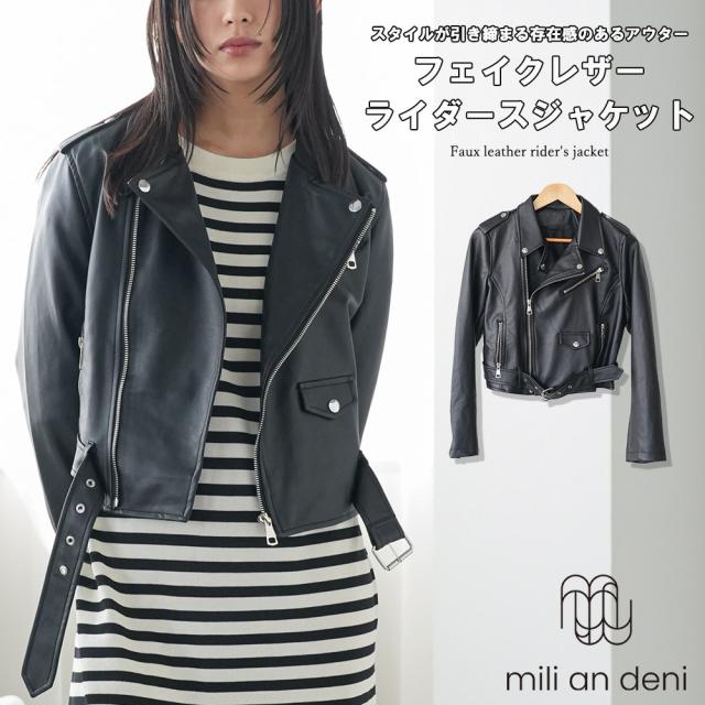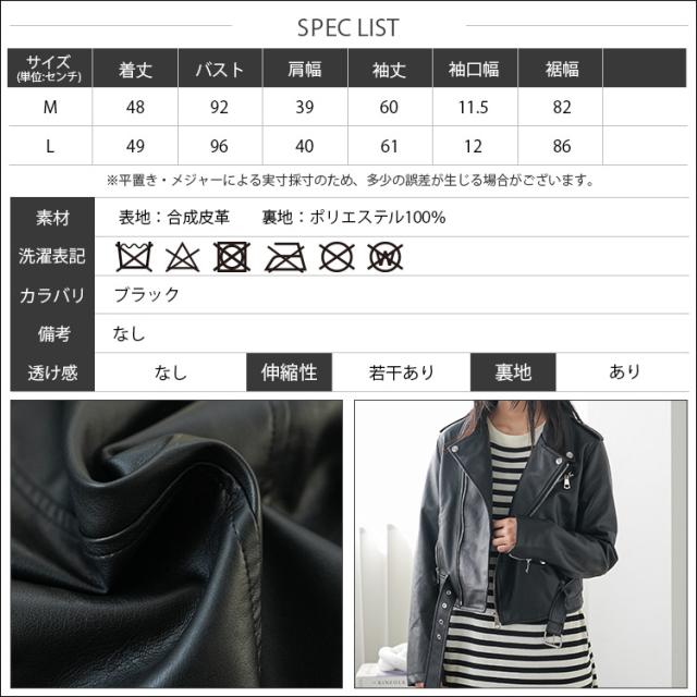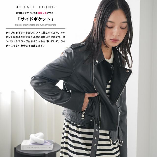 春新作 フェイクレザーライダースジャケット 合成皮革 アウター ダブル 長袖 ジャケット ジップアップ 春夏 レディース アウター ミリアンデニ メール便(郵2) a61101