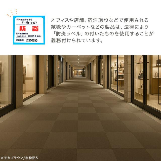 ・複数の場所で分けてタイルカーペットを使用する場合、防炎ラベルのない箇所は効力を喪失します。