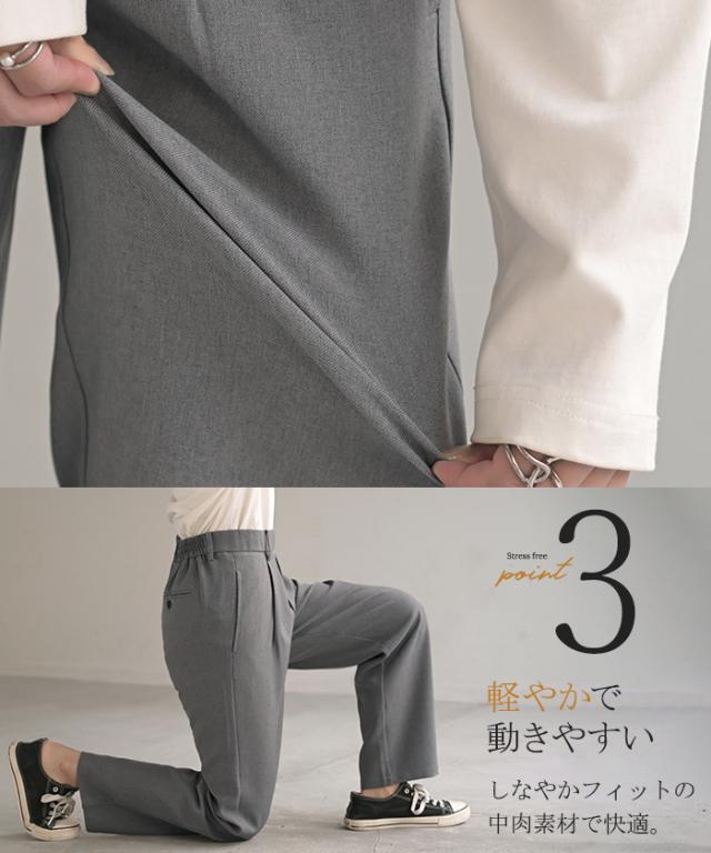 ノンストレスな穿き心地で、きれいめにもカジュアルにも対応できる万能アイテムです。