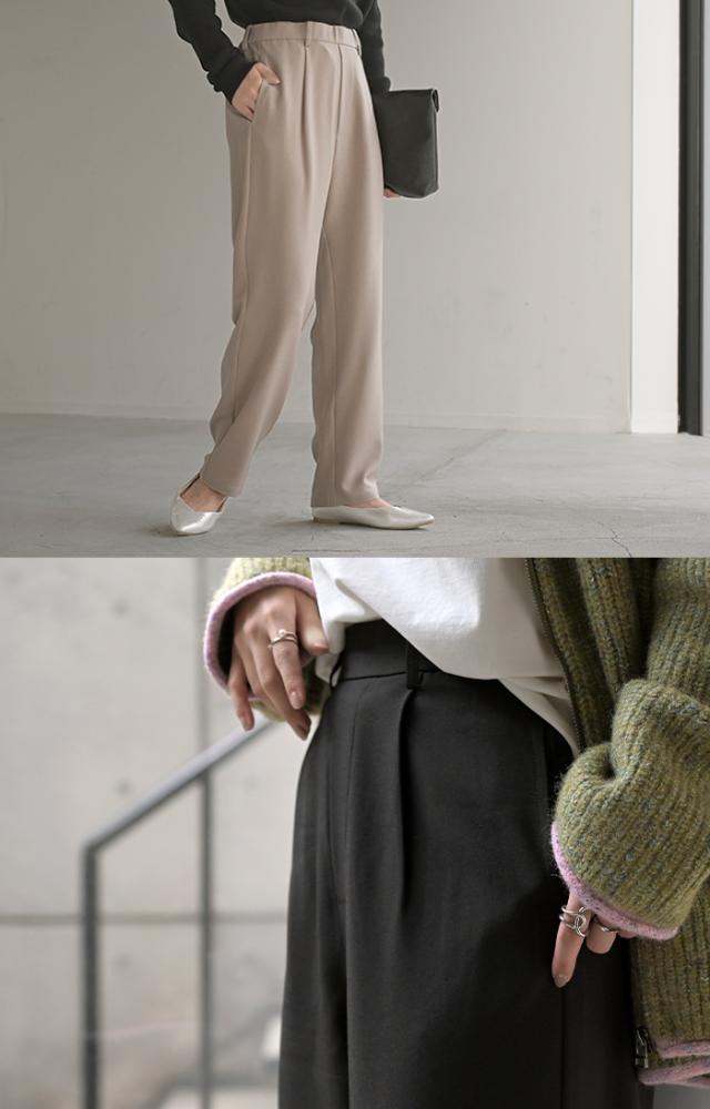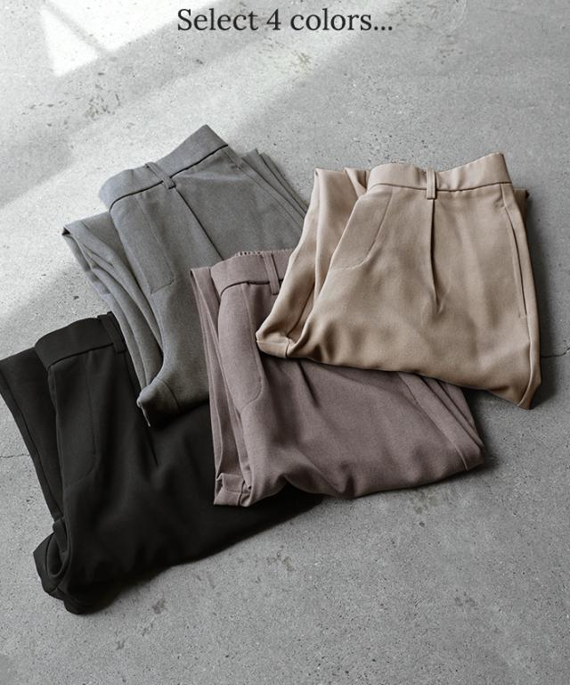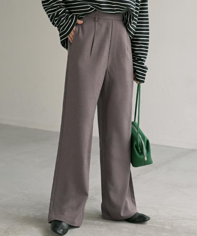 ウールライクな生地とストレッチが特徴的なタックパンツです。
