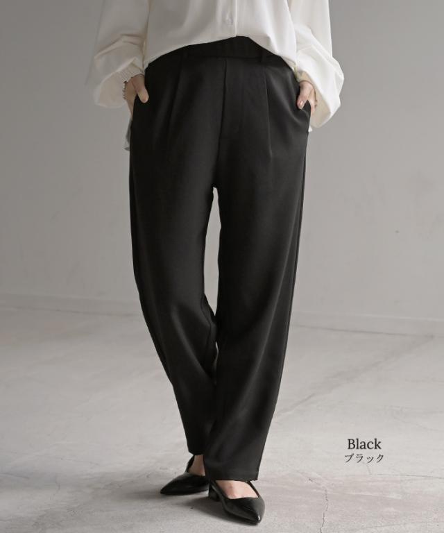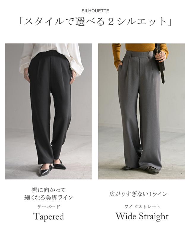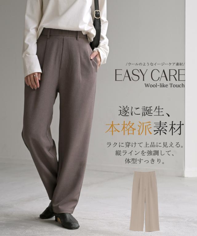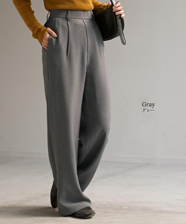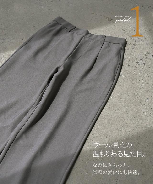 2025AW新作 パンツ イージーケア ウール ライク ワイド テーパード タックパンツ レディース タック ワイドパンツ ストレッチ ロングパンツ 体型カバー ボトムス ボトム ストレート シワになりにくい ズボン ゆったり 大きいサイズ 黒 グレー 秋 冬 HUG.U