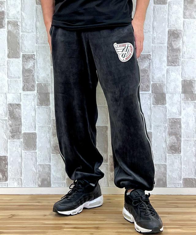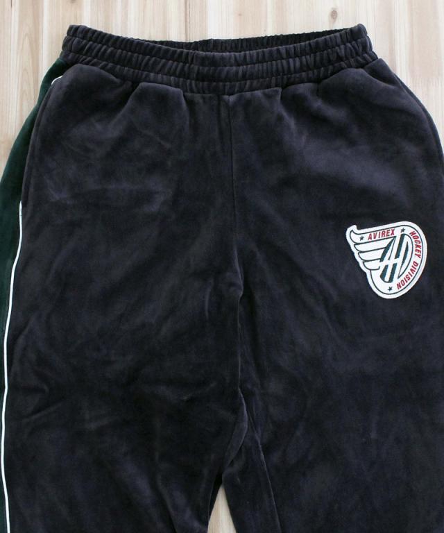 送料無料 AVIREX アヴィレックス VELOUR PANTS A.C.D 783-5210022 ベロア パンツ ジャージ サイドライン 刺繍 アビレックス ロングパンツ イージーパンツ メンズ