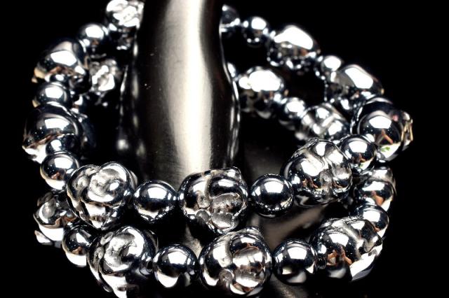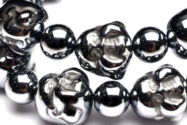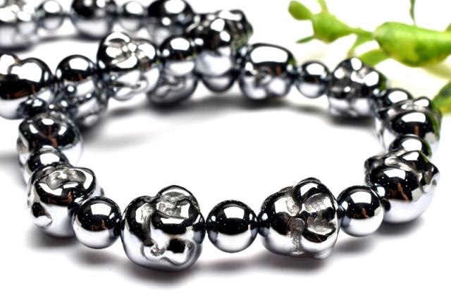 健康のお守りに! テラヘルツ鉱石 12.5x12.5(丸玉7.5)mm 布袋様 彫刻 ブレスレット 1個売り _BG5994