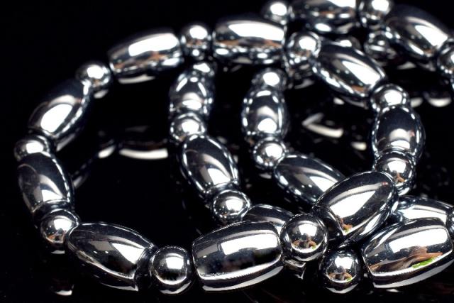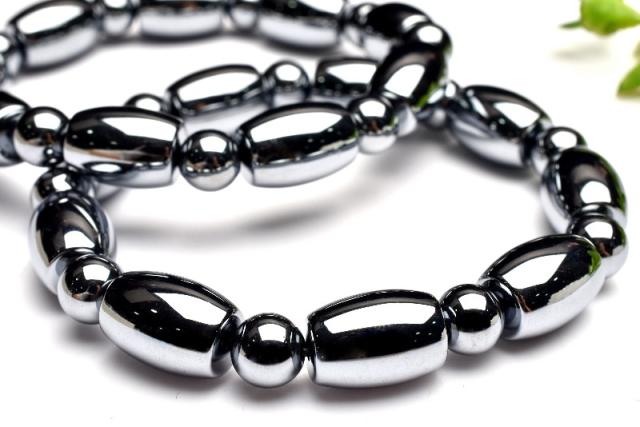 健康のお守りに! テラヘルツ鉱石 14x10(丸玉7.5)mm チューブ ブレスレット 1個売り _BG5997