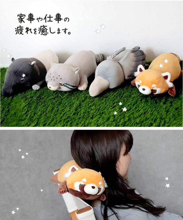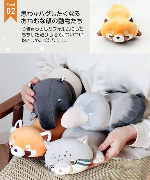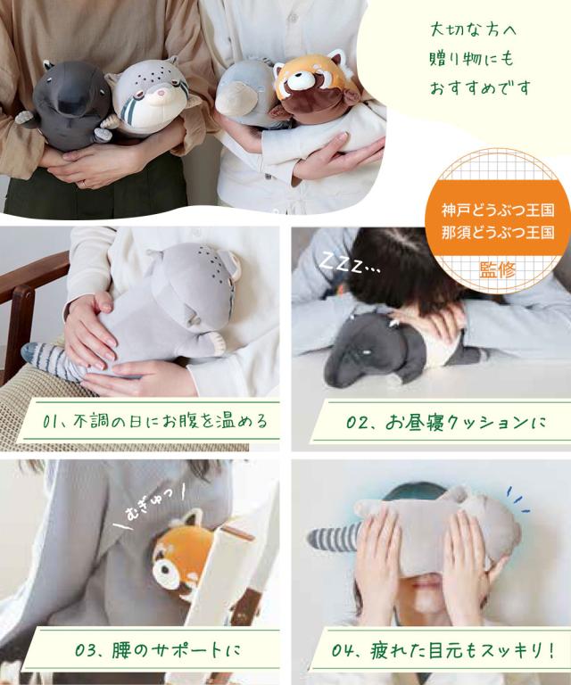ピロークッション ぬいぐるみ クール ひんやりグッズ ホット 温め 冷え対策 あったかグッズ スチーム 抱き枕 車 子供 仮眠 休憩 旅行 アウトドア キャンプ クッション 動物 アニマル レッサーパンダ マレーバク マヌルネコ ハシビロコウ Hug me'Zoo HOT&COOLピロークッション