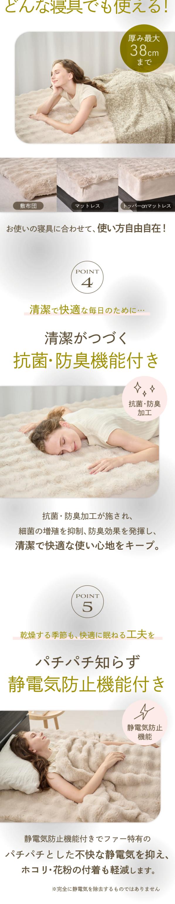 抗菌・防臭加工に加え、静電気防止機能を備え、清潔で快適な使い心地を長くキープ。小さなお子様や敏感肌の方にも安心してお使いいただける低ホルムアルデヒド仕様です。ISO認証取得工場で生産し、国際基準に適合。信頼の品質をお約束します。