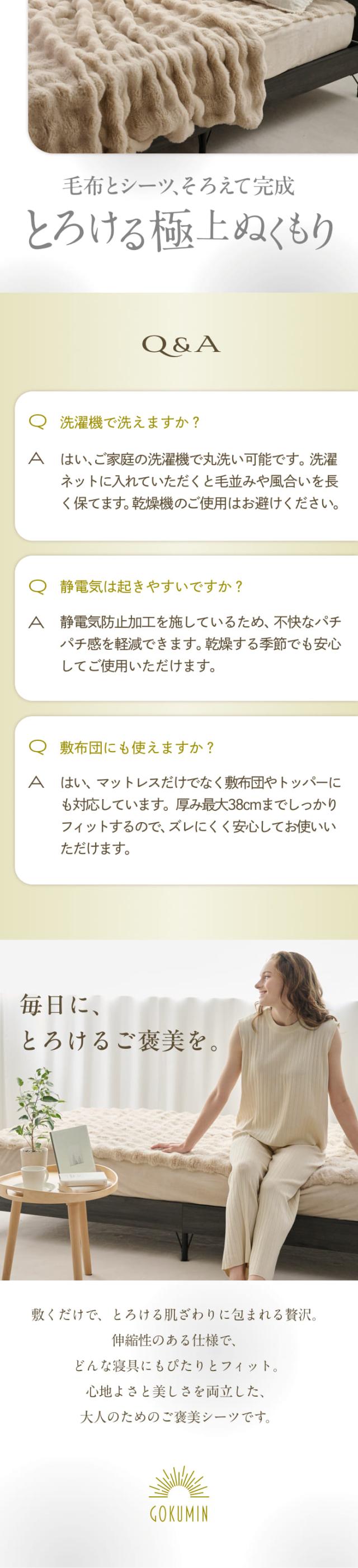 “毎日の眠りを、もっとあたたかく、もっと清潔に。”そんな想いから生まれたPOCOMOCOボックスシーツ。 とろけるような肌ざわりと、手軽に洗える清潔さを両立させ、冬の夜を心から心地よく過ごせるように仕立てました。「眠りにつく瞬間から、朝目覚めるまで、安心して身をゆだねられる存在でありたい」それが、私たちGOKUMINが大切にしている新しい寝具づくりのカタチです。
