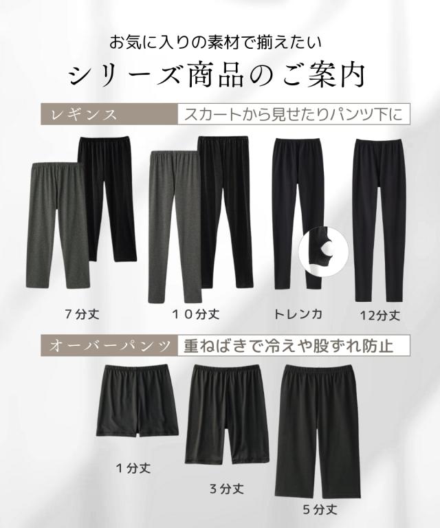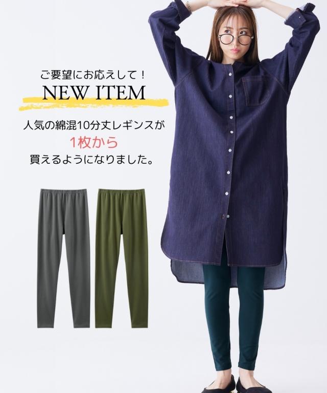 【綿混10分丈レギンス】 季節を問わず、幅広い着こなしに合わせられるベーシックな10分丈レギンス! 綿混なので肌ざわりがよく、1着持っていると安心の万能アイテムです。 ■綿混レギンスはこんな方におすすめ ・お肌に優しい素材がいい ・オールシーズン使えるレギンスがほしい ●天然素材 コットン95% お肌に直接触れるものだから、生地にこだわりたい方へ。 通気性がよく優しい手ざわりの綿混をおすすめします。 ●オールシーズン対応 厚すぎず薄すぎない、程よい生地感。夏は涼しく、冬は暖かく着られます。 季節を問わず、1着持っていると安心の万能アイテムです! ●1日はいても疲れにくい 縦横ストレッチで快適なはき心地です。ヒザの曲げ伸ばしもラクラク! ウエストゴムも伸縮性が高く、ゆったり。 ストレスフリーで、1日中はいても疲れません ●細部にもこだわった仕様 股上深めなので、かがんでも背中が見えにくい! 98%以上の紫外線を防ぐので、はくだけで日焼け対策にも! ウエストゴムはねじれ防止縫製になっています。 ●股ずれ防止にもおすすめ レギンスパンツをはくことで、肌と肌の摩擦がなくなります。そのため股ずれがしにくくなります。