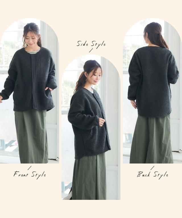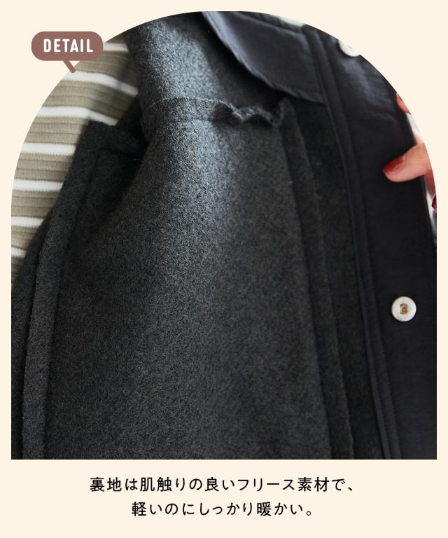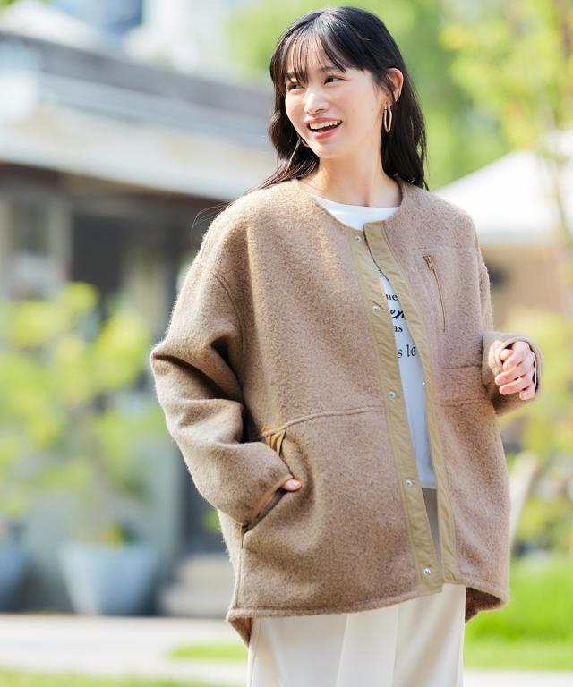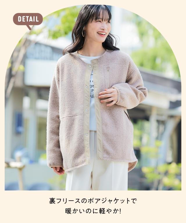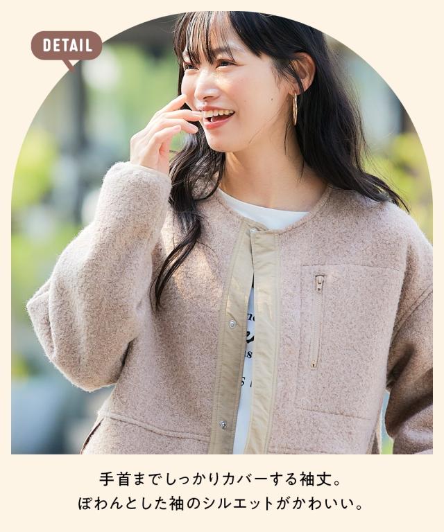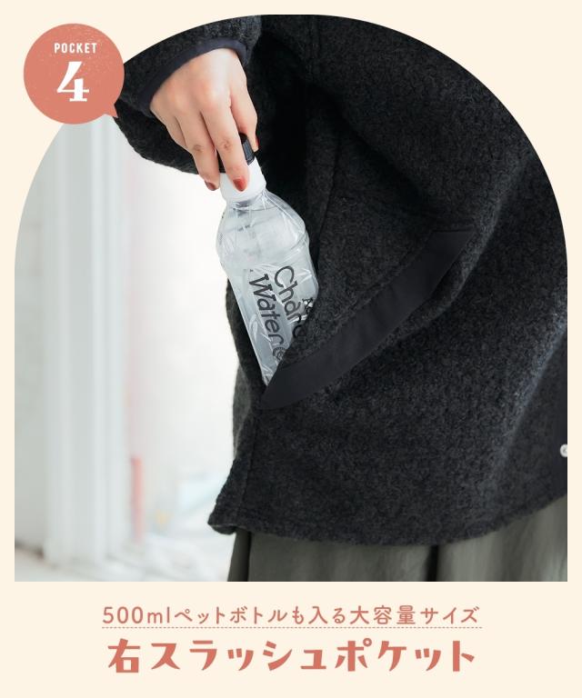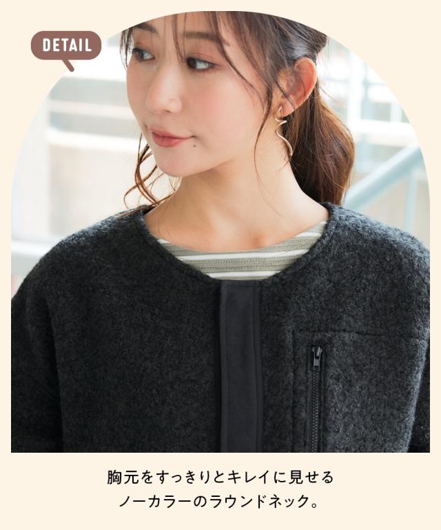 暮らしに寄り添うデイリーウェア【私の味方服】毎日の着やすさをトコトン追及なにげない毎日をさりげなく幸せにしてくれる!そんな「頼れる味方」になってくれる【私の味方服】多ポケットシリーズ人気の多ポケットコートシリーズに新商品が登場 ・7ポケットで手ぶら感覚バッグ要らずで、A4サイズ・スマホ・財布・エコバッグ・ペットボトルなどをしっかり収納出来る軽量ボアジャケットコート・コート本体はボア素材なのに驚くほど軽量な設計。ポケットに物を入れても軽く着て頂けます!・まるで「着るバッグ」のように、これ1枚で手ぶらお出かけが叶います・裏起毛をふんわり起毛させているから、冬の始めから寒い季節まで快適ちょっとしたお買い物やお散歩はもちろん、旅行やアウトドアでも大活躍!毎日の暮らしをぐっと便利にしてくれます ■デザイン オーバーシルエットだから体型を気にせず着られるジャケットコート少し前後差のある着丈が、こなれ感を演出!部分的に布帛の別布を使いアクセントに!女性らしくカジュアルデイリーに活躍!7ポケットで手ぶら感覚のアウターです。 1.左胸ファスナーポケット(ポケット口約10cmタテ20cmヨコ14cm程度)・・・モバイルバッテリーやイヤホン・カードケ