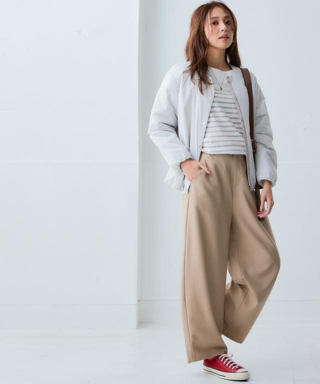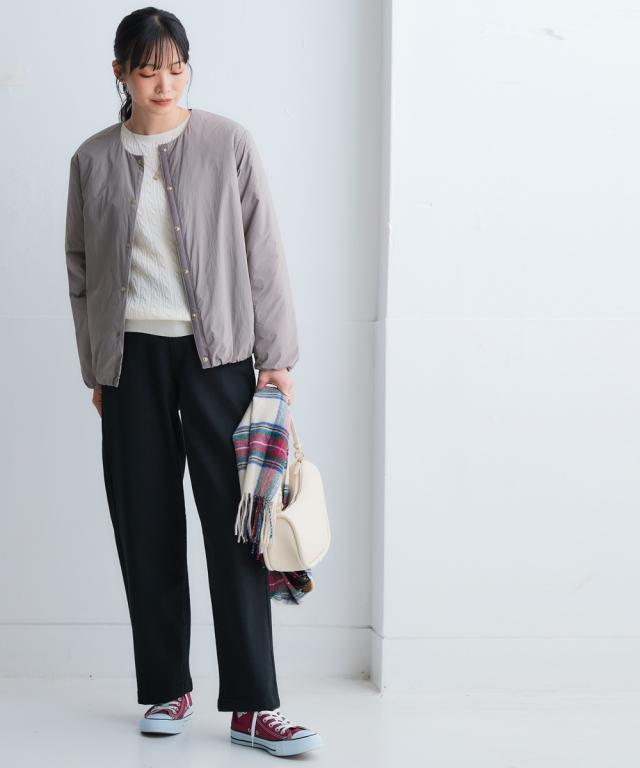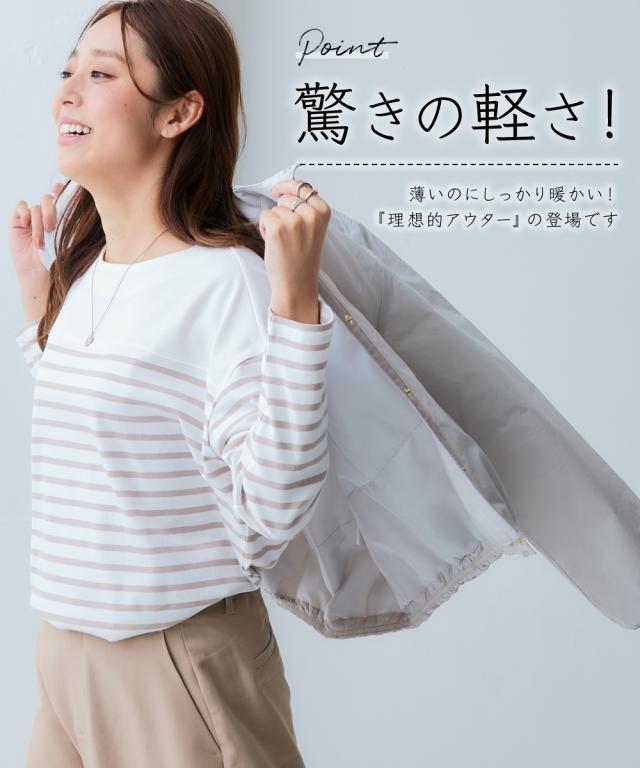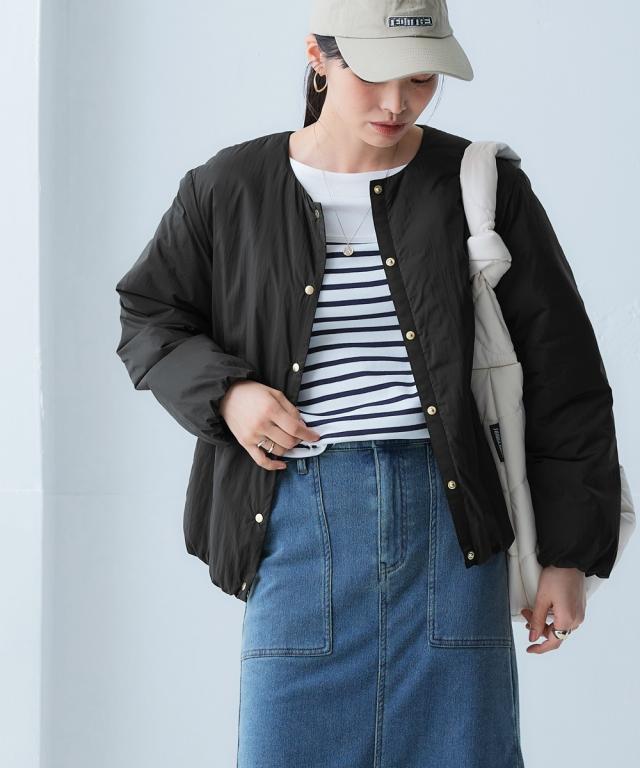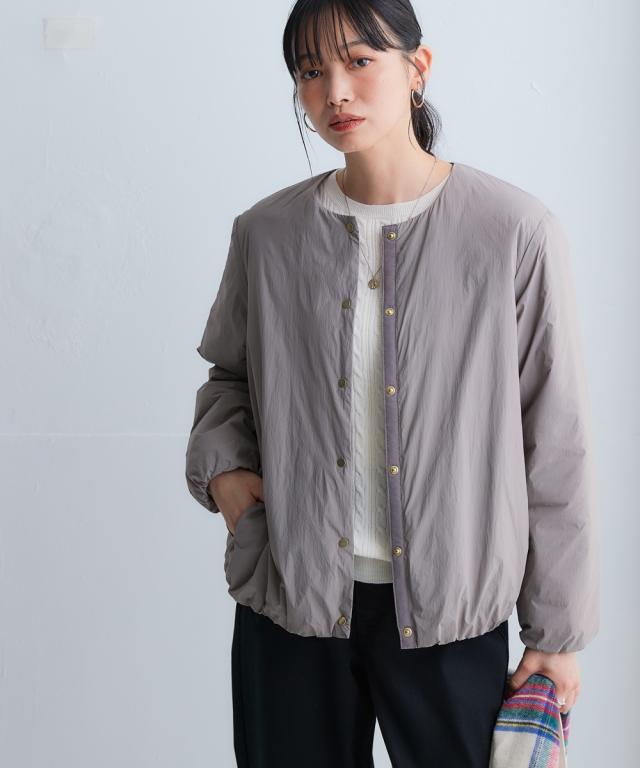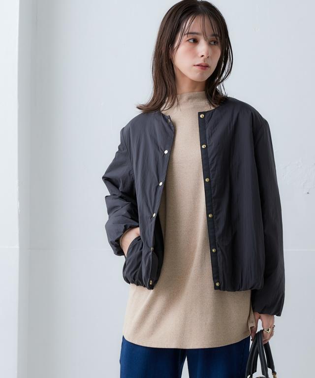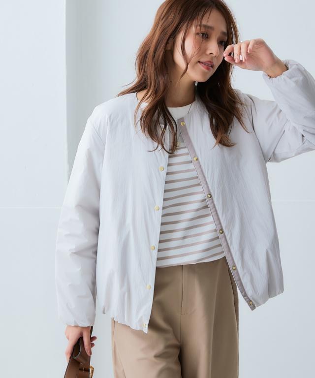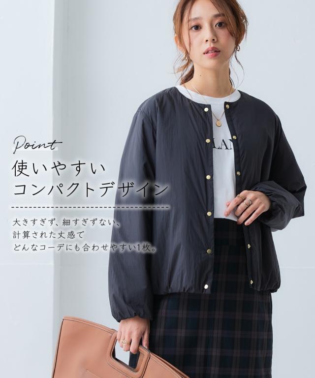 朝晩・真冬はしっかり寒い。でも日中は暖かい。 持ち運びのことを考えたら薄くて軽いものが良い。でも寒いのは嫌。 そんなお悩みをまるっと解決する今年の最適解アウター! ■デザイン 着心地はとても軽いのに暖かいということがポイント。 軽くて暖かい秘密は中空ファイバー中わたシート。 綿の繊維を中空糸にすることで軽さと暖かさを両立しました。 ノーカラーのブルゾンで首元はすっきり。 タートルネックなど中に着こむアイテムを変えてのコーディネートも ステッチレスデザインですっきりとした印象に。 大きすぎず、細すぎず、コンパクトな丈感でバランスがとりやすいシルエットです。 ポケットがついているので便利。 ■素材 軽量で暖かい中空ファイバー中わたシート。 はっ水機能付きなので急な雨にも対応。 ■コーディネート ちょうどよい丈感でデニムやスカートなどお持ちのアイテムで簡単にコーディネートできます。