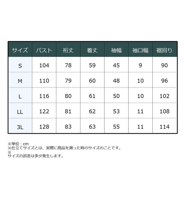 品質=[表地]ナイロン100% [裏地]有(総裏)[中わた]ポリエステル100% 前ボタン開き 袖口・裾ゴム入 ポケット両脇 前ボタン開き 袖口・裾ゴム入 ポケット両脇 透け感:なし 伸縮性:なし 生地の厚み:薄い 光沢感:なし 裏地:あり ポケット:あり 季節:冬 シルエット:普通 原産国:中国製 備考:手洗い ※単位:cm ※仕立てサイズとは、実際に商品を測った時のサイズのことです。 ※サイズの誤差は多少発生します。