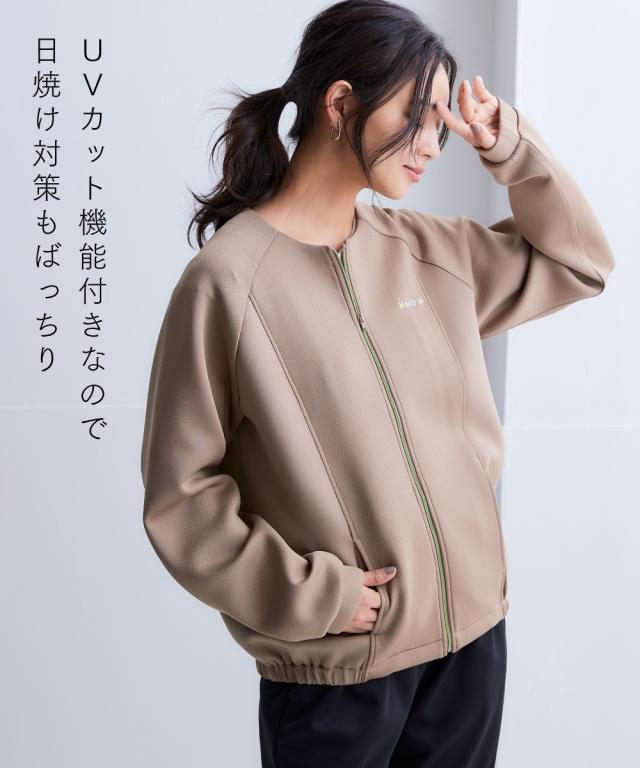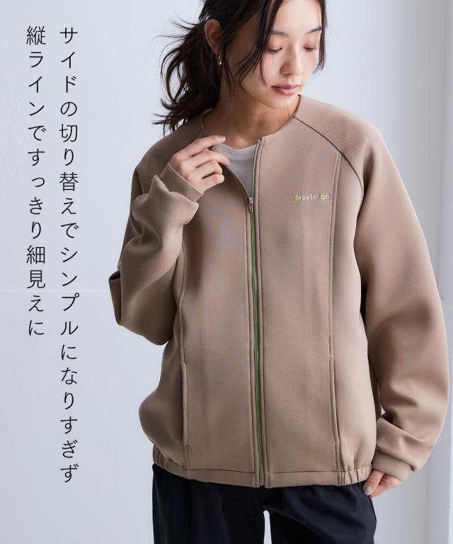 ジャケット アウター レディース メッシュダンボールノーカラー ブルゾン 吸汗速乾 UVカット 春 秋 冬 | L/LL/3L | ニッセン nissen