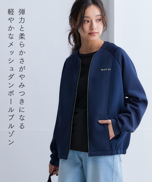 ジャケット アウター レディース メッシュダンボールノーカラー ブルゾン 吸汗速乾 UVカット 春 秋 冬 | 4L/5L/6L | ニッセン nissen