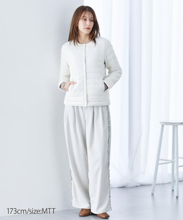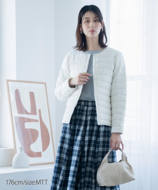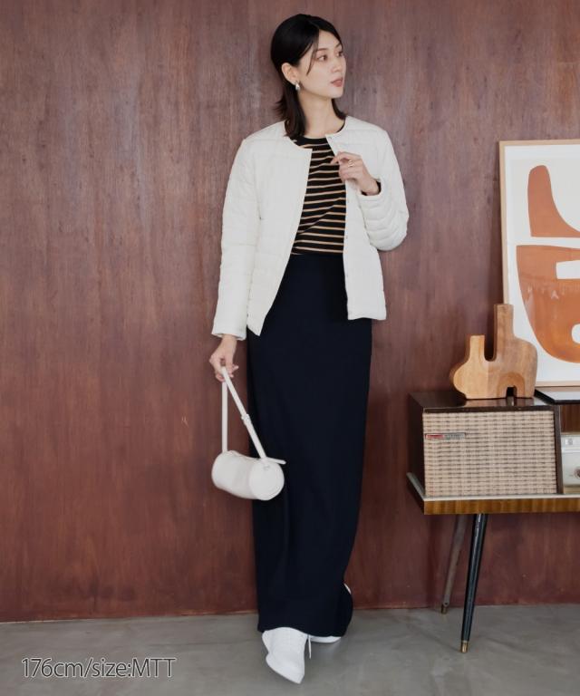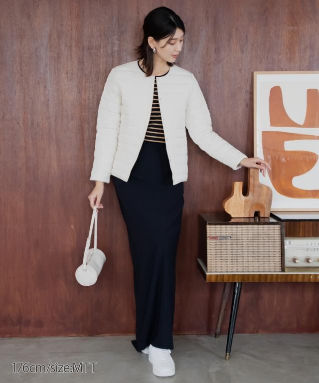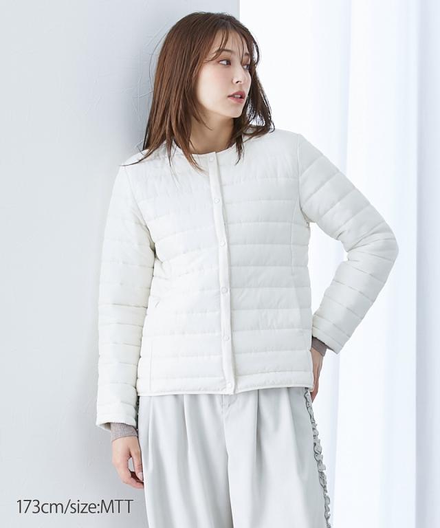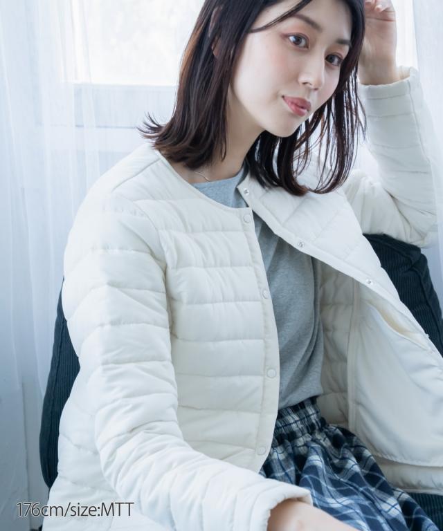 【高身長の方向け】これ1枚でも、寒い日はアウターのインナーダウンとしても使えるお利口な1着 ■デザイン 軽くて暖かく、秋から冬、肌寒い春先までロングシーズン着用できるノーカラーコート。着ぶくれしないコンパクトな設計なので、インナーダウンとしても使えちゃいます! ■素材 着ていることを忘れるくらい軽くて暖かい中綿コート。 ■おすすめのスタイリング すっきり見えるシンプル設計なので、スカートにもパンツにも合わせやすいです。