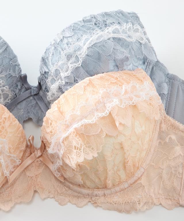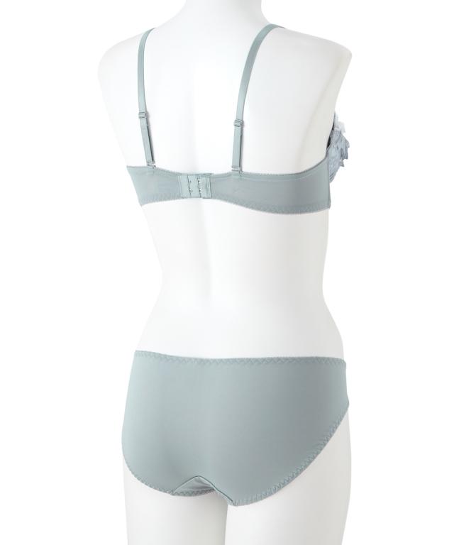 レースフリルをあしらったロマンティックなブラ&ショーツセット 2種類のレースフリルがドーリィな1着。 柔らかいソフトワイヤー仕様で優しく体にフィット 下厚モールドカップで美しいバストラインヘ。 詳しいショーツサイズについては詳細画像内サイズ表を参考にお持ちのショーツと比較してみてください。