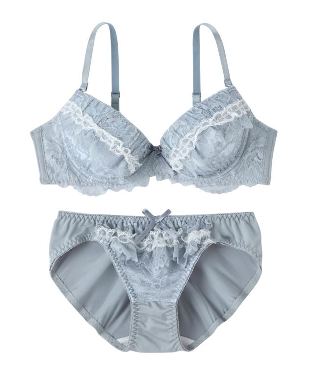 レーシーフリルソフトワイヤーブラジャーショーツセット