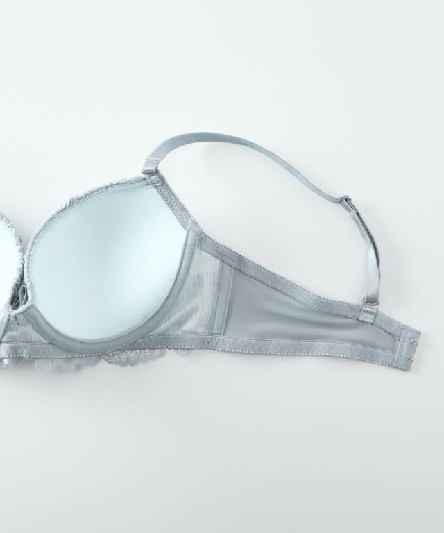 レースフリルをあしらったロマンティックなブラ&ショーツセット 2種類のレースフリルがドーリィな1着。 柔らかいソフトワイヤー仕様で優しく体にフィット 下厚モールドカップで美しいバストラインヘ。 詳しいショーツサイズについては詳細画像内サイズ表を参考にお持ちのショーツと比較してみてください。