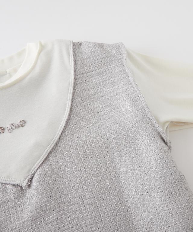 おしゃれキッズ必見!一枚で旬顔コーデが完成する「ツイード使いレイヤード風トップス」が登場! 上品なツイード素材のベストと、着心地の良いカットソーがドッキングした、忙しい朝にも嬉しいレイヤード風デザイン。 これ一枚で、トレンド感のあるおしゃれな着こなしが叶います。 通学や休日のお出かけなど、様々なシーンで活躍すること間違いなし! ■デザイン ・上品な光沢感と立体感のあるツイード素材が、高見え効果抜群。カジュアルになりすぎず、大人っぽい印象を与えます。 ・ツイードベスト部分は、顔周りをすっきりと見せるVネックデザイン。 ・締め付け感のないゆったりとしたシルエットで、動きやすさも抜群。元気いっぱいの女の子にぴったりです。 ■素材 ・上品なツイード素材と肌触りのいいカットソー素材で着心地と高見えを両立 ■おすすめのスタイリング ・デニムパンツやチノパンと合わせて、普段使いにぴったりのカジュアルスタイル。スニーカーやキャップをプラスすれば、よりアクティブな印象に。 ・フレアスカートやプリーツスカートと合わせて、とことんガーリーに。バレエシューズやリボンヘアアクセサリーをプラスすれば、お嬢様風コーデの完成。 ・スキニーパンツやレギ
