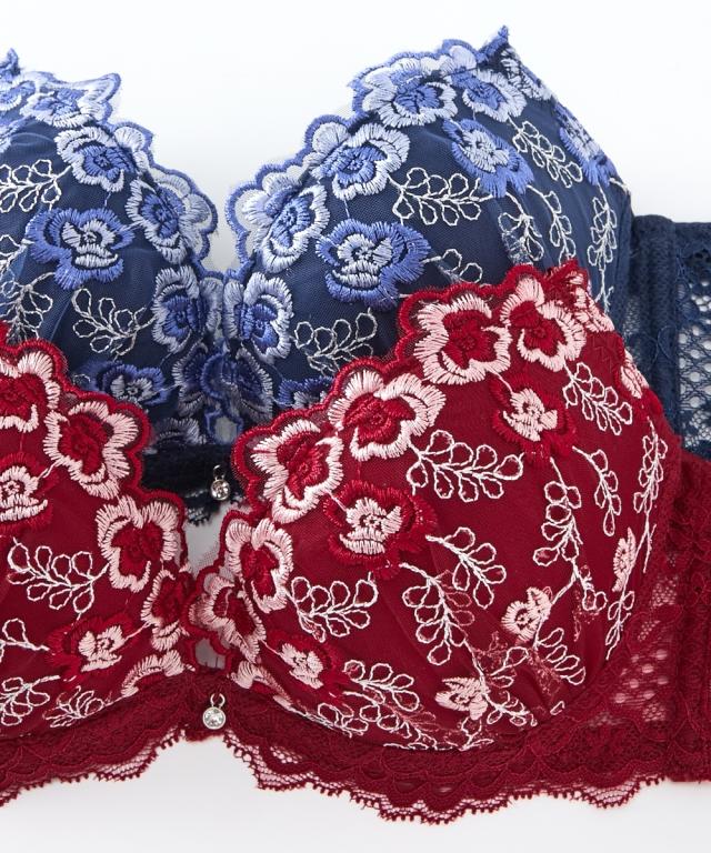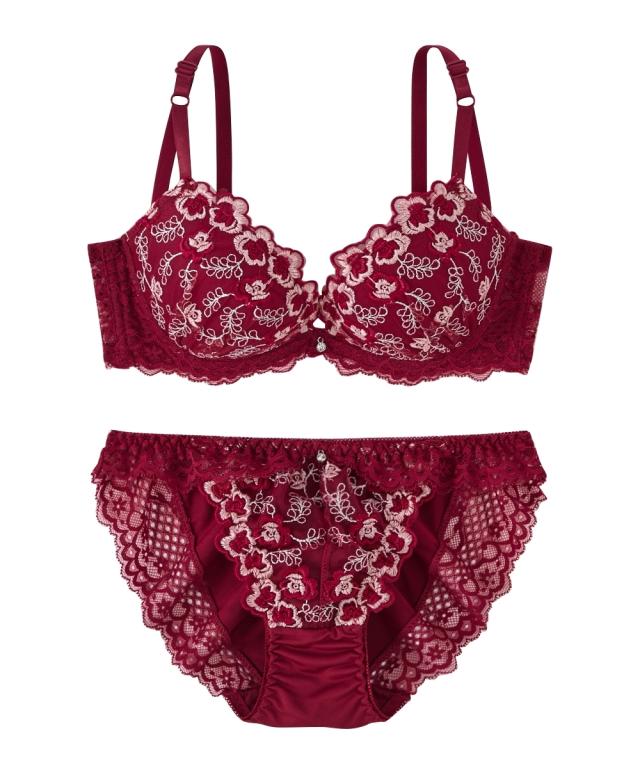 エレガントなブラ&ショーツが登場! ゴージャスで大人エレガントなデザイン! 胸元のチャームで上品さをプラス 脇高設計で背中からしっかり寄せこみ美谷間&美シルエット! ワイン・ネイビーの2色展開です。