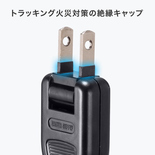●差し込みプラグには絶縁キャップ付きで、トラッキング火災を防ぎ、安全性を高めています。