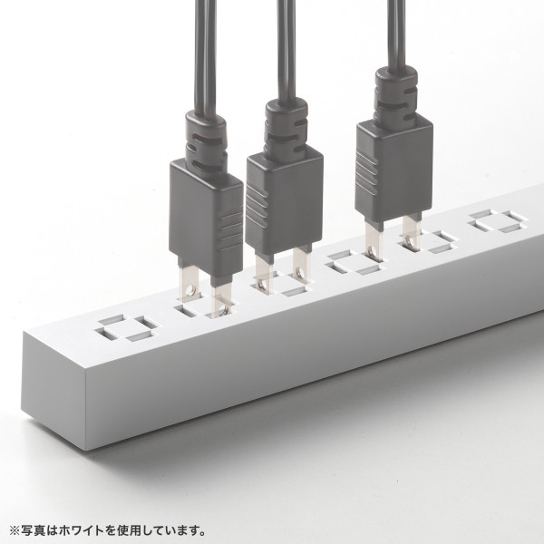 ●縦横どちらの向きでもプラグを差し込める独自設計です。間のスペースも有効活用でき、自由度が高いタップです。