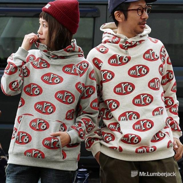 パーカー 裏毛 スウェット メンズ レディース 長袖 プルオーバー コンチョボタン ハイネック USAコットン 綿100% ポケット 袖 裾 リブ 総柄 プリント 防寒 保温 秋冬 おしゃれ カジュアル パティ Mr.Lumberjack ミスターランバージャック