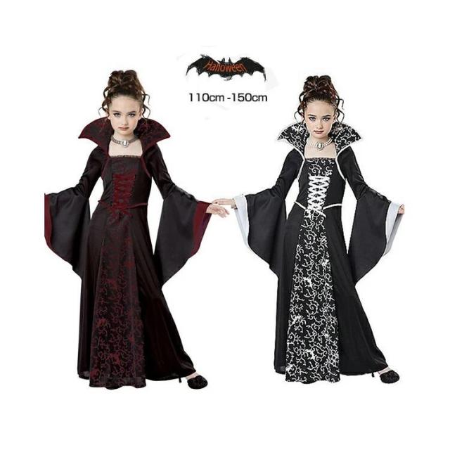 ハロウィン 衣装 中世ヨーロッパ貴族 魔女 悪魔 女の子 子供 キッズ 吸血鬼 バンパイア 巫女 ワンピース ドレス 宮廷装 コスチューム バンパイア コスプレ 仮装 お姫様 女王 魔女 物語 変装 イベント パーティー 文化祭 学園祭 演出服 Halloween