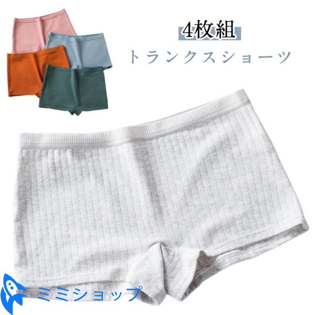 下着 レディース 女性用 ショーツ ボックスショーツ 【4枚組】トランクス ボクサーパンツ 肌着 【4枚組】トランクス 抗菌 コットン リブ 無地 通気性 インナーパンツ すっぽり 深ばき ストレッチ 綿 タップパンツ 女子 中学生 ジュニア