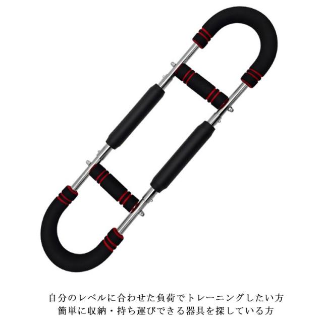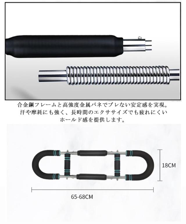 | 自宅で本格全身トレーニング!胸筋・背筋・腕・腹筋に効く多機能アームバー 【滑り止めグリップ】 グリップ部分は滑りにくい凹凸仕様で、手汗をかいても安心です。 3段階負荷調整+3種の重量タイプで自分だけの強度に 【3段階の負荷調整可能】 調節可能なグリップ位置を上下にスライドさせるだけで30kg/40kg/50kgの3モードに瞬時切替。 【高耐合金製】 合金鋼フレームと高強度金属バネでブレない安定感を実現。汗や摩耗にも強く、長時間のエクササイズでも疲れにくいホールド感を提供します。 こんな方におすすめ! 自宅で本格的な筋トレをしたい方 ジムに通えない日も全身を鍛えたい方 自分のレベルに合わせた負荷でトレーニングしたい方 簡単に収納・持ち運びできる器具を探している方 | |
