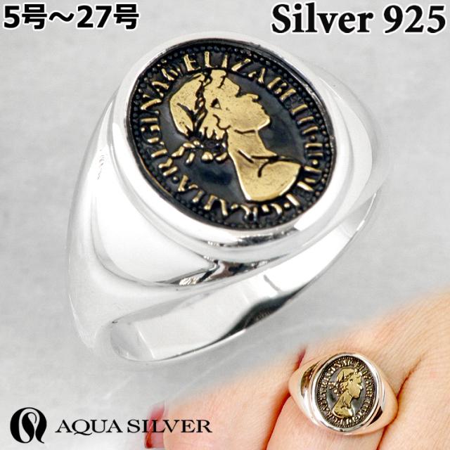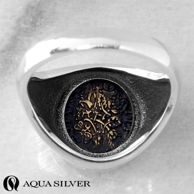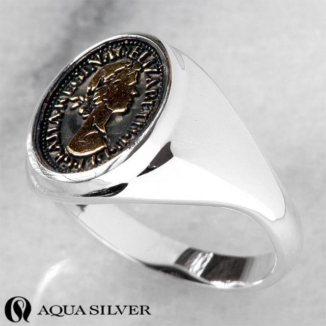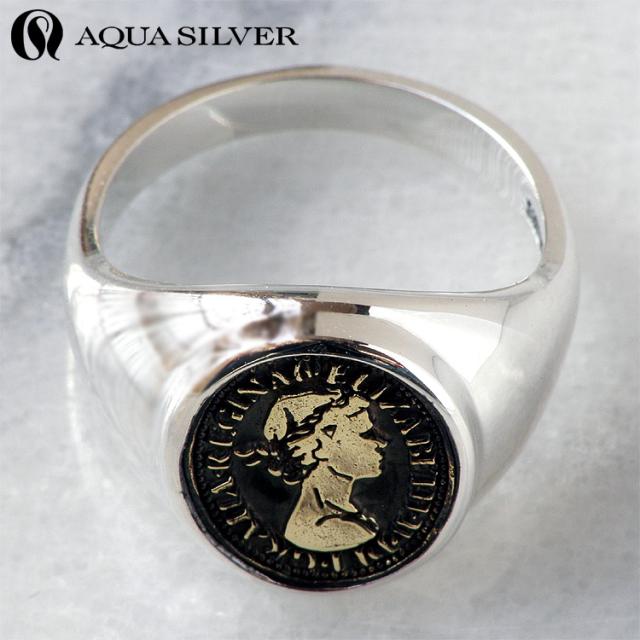 アクアシルバー 幸せの シックスペンス コイン シルバー リング 真鍮 指輪 シルバー925 メンズ レディース ASR219BRF AQUA SILVER 5号〜27号 アクセサリー ジュエリー ブランド