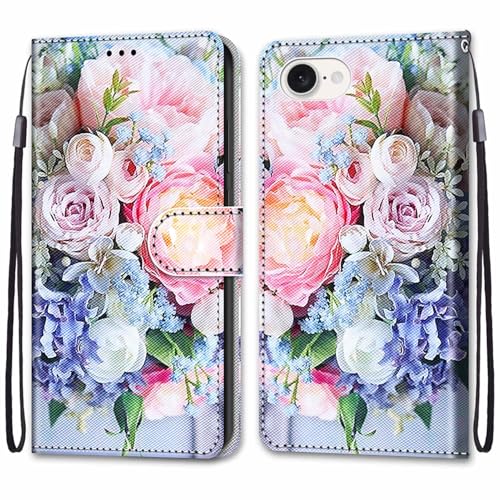iPhone 16e ケース 手帳型 可愛い スマホカバー スマホケース 耐衝撃 ポケット付き スタンド機能 カード収納 薄型 ソフトケース 癒される 猫 フラワー 学生 人気 絵柄 合皮レザー マグネット式 財布 ブックカバー 花束