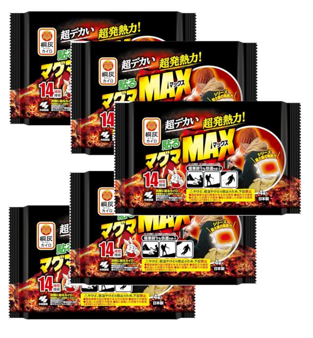 桐灰 貼るマグママックス 4個入り×5 【5個セット】送料無料 貼るカイロ 早く温まり冷めにくい 冬場のキャンプ場 スキー場 屋外