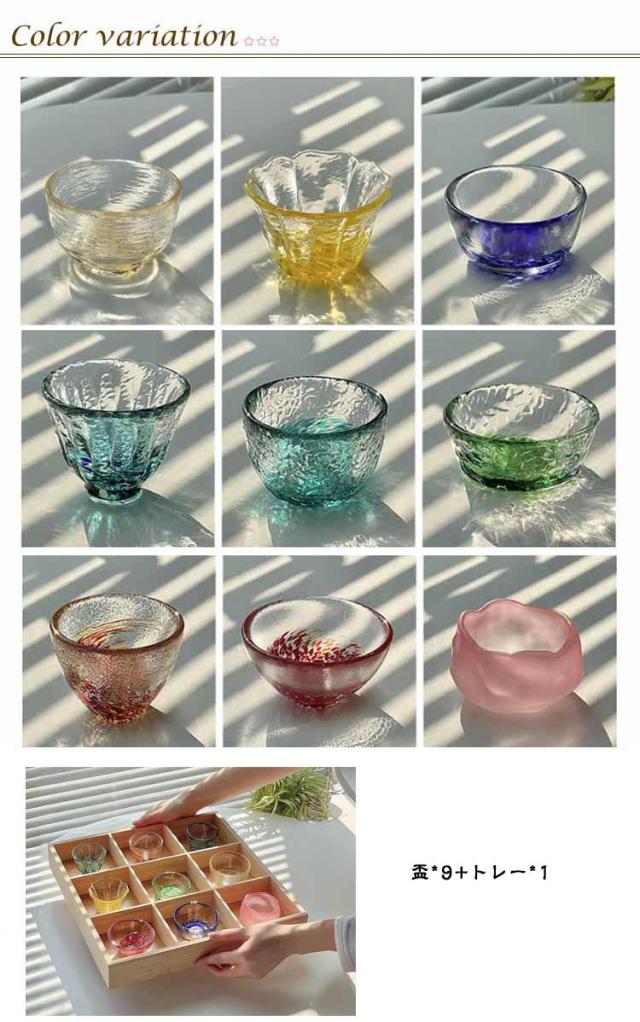 おしゃれ 食器 9個入 盃 男性 可愛い ガラス グラス 日本酒 猪口 お酒 酒 冷酒 硝子 ミニグラス お猪口 父の日 おしゃれ おちょこ かわいい コップ ブルー 透明 誕生日プレゼント お猪口 還暦祝い 高級 プレゼント